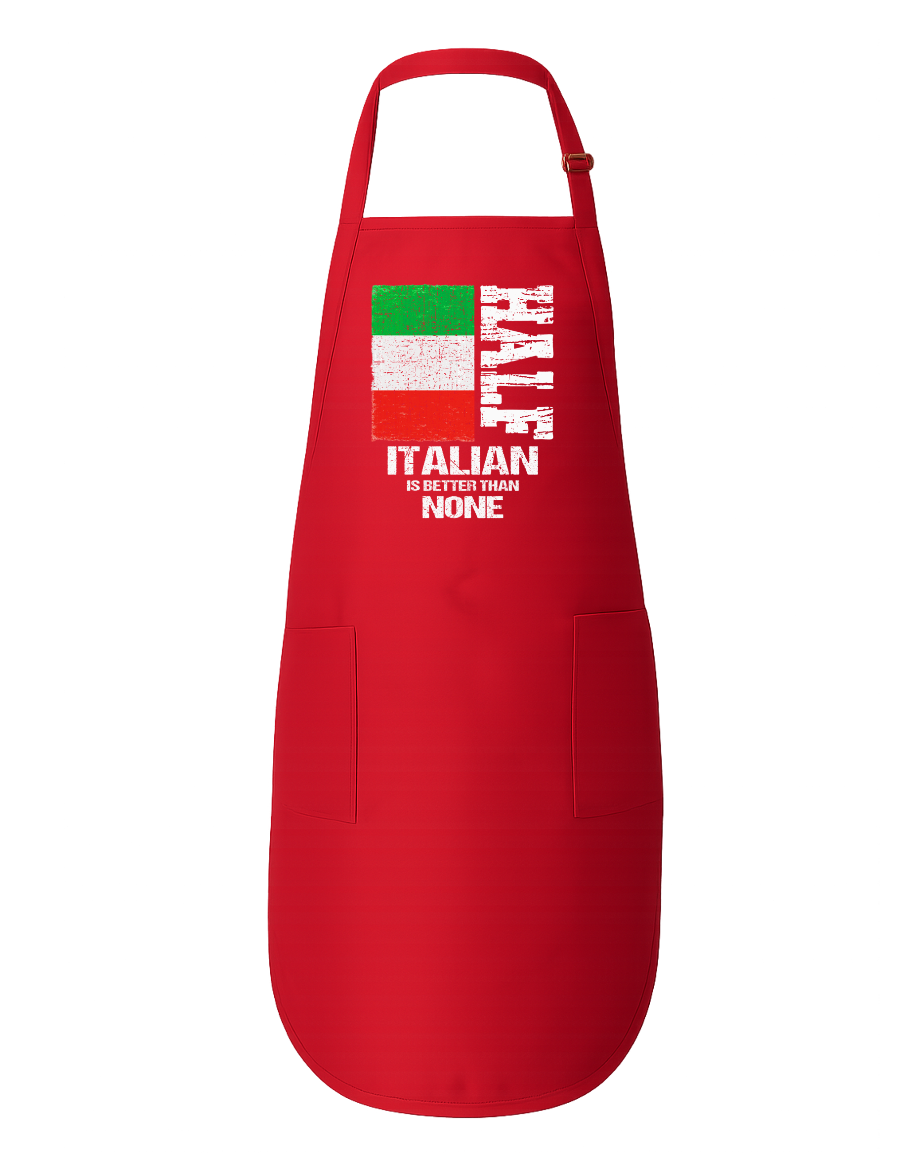 Bring pride and personality into your kitchen with the “Half Italian Is Better Than None” Full-Length Apron — a fun and functional way to celebrate your roots while keeping your clothes spotless. Featuring a bold Italian flag design and distressed white lettering, this apron is perfect for anyone who knows that being even a little Italian comes with big passion for food, family, and fun.