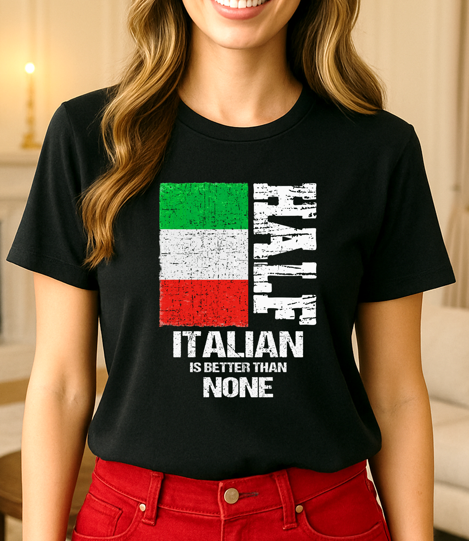 Half Italian shirt, half Italian is better than none tee, Italian pride shirt, funny Italian t-shirt, Italian heritage apparel, Italian roots shirt, Italian American tee, Italy flag shirt, Italian ancestry gift, Italian festival clothing, Italian humor shirt, Italian culture pride tee, Italian family reunion shirt, proud Italian shirt, Italian lifestyle apparel, Italy flag graphic tee, Italian American pride shirt, Italian heritage gift idea, half Italian pride apparel, Italian roots graphic t-shirt